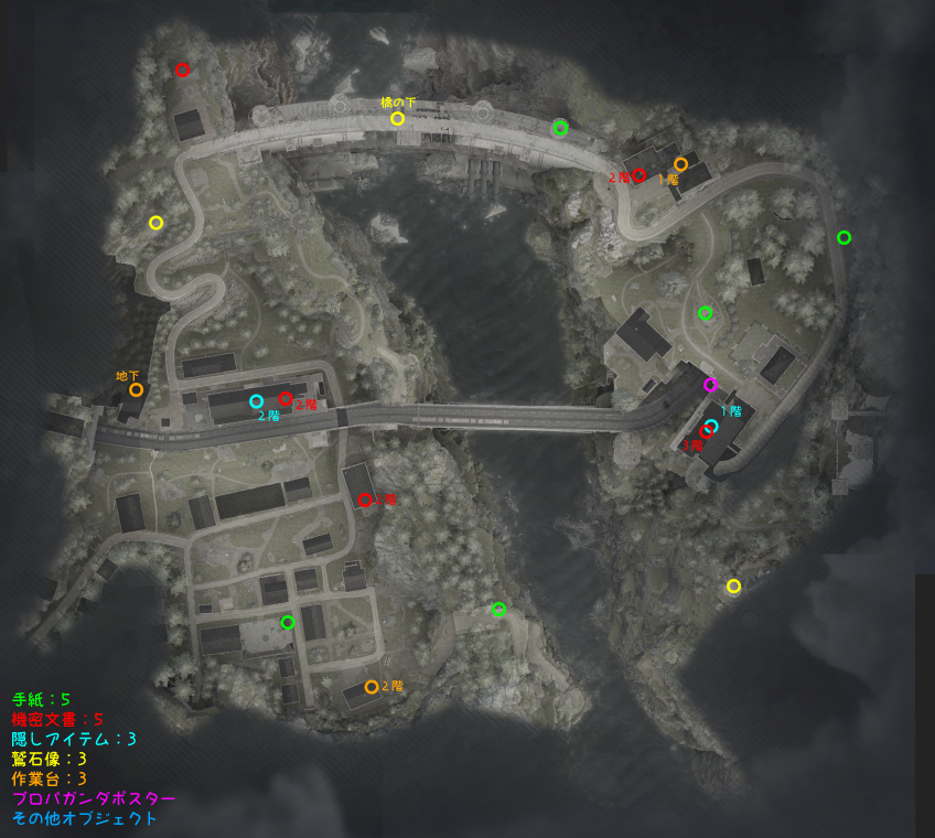 - Propagandaplakate zählen zu versteckten Gegenständen, so dass es den Anschein haben kann, dass ein versteckter Gegenstand auf der Karte unten fehlt.