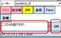 プライベートメッセージを送るにはあらかじめプライベートメッセージビューを選択する必要があります。サイドメニューから「PM」ボタンをクリックします。(PM という文字はミニブログサービスによって変わります)