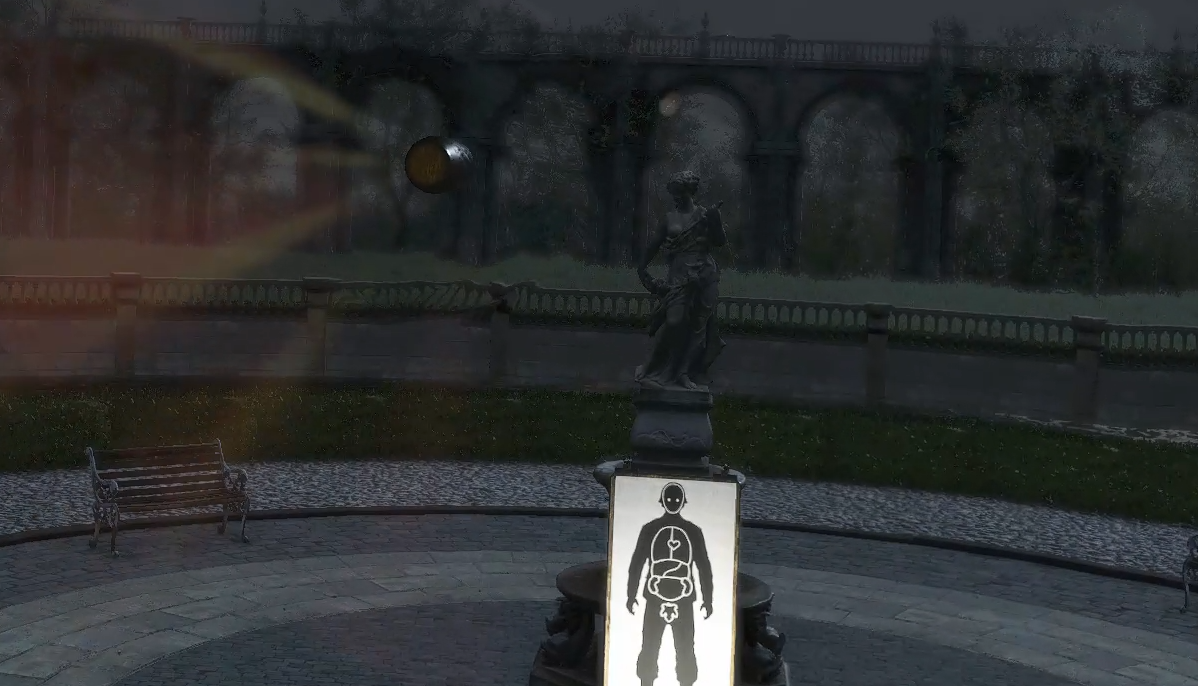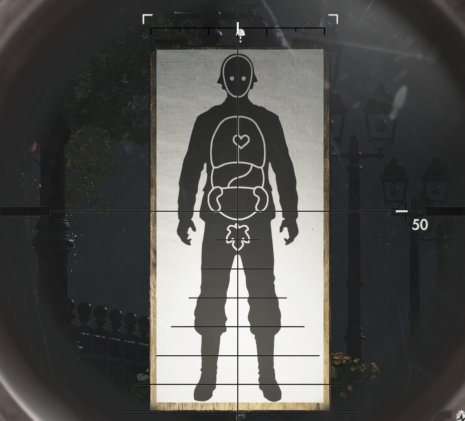 Quand vous tirez réellement, vous pouvez voir qu’il y a une statue de pierre derrière la cible.