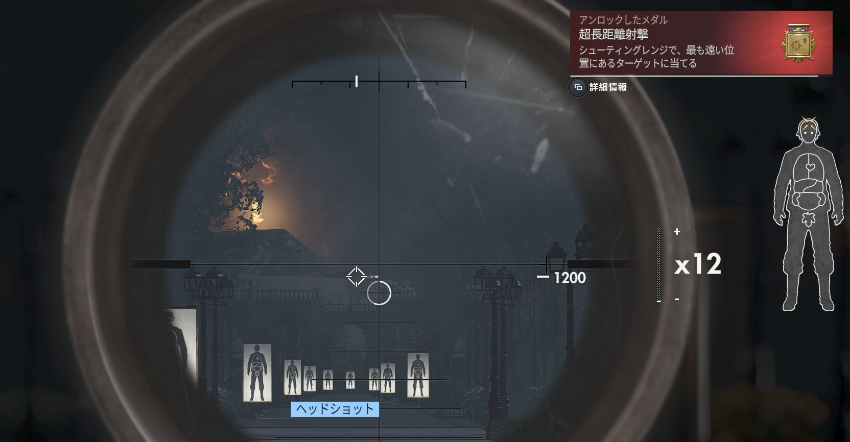 Il y a une cible de 1000 m à l’arrière, mais en réalité, une statue de pierre est juste derrière. Même si vous éclairez l’écran et que vous le regardez avec des jumelles, vous pouvez à peine le voir, mais en termes de position, il sera à environ 1000 m au-dessus de la cible.