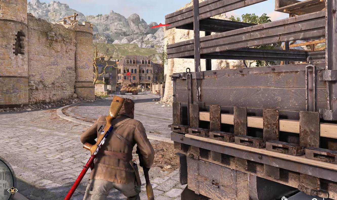 Si vous détruisez la statue de pierre, une nouvelle cible apparaîtra en haut. La distance est d’environ 1065 m. Ce n’est pas si difficile à toucher car il ne bouge pas.