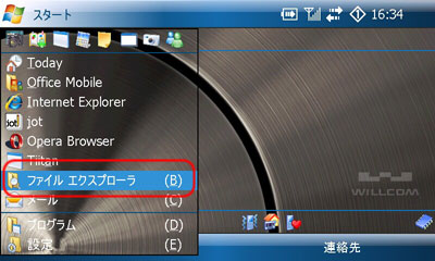 Windows Mobile でファイルエクスプローラを開き、先ほど CAB ファイルを配置したフォルダに移動します。