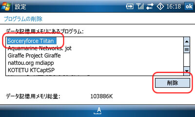 「SorceryForce Tiitan」を選択し、削除ボタンをクリックします。