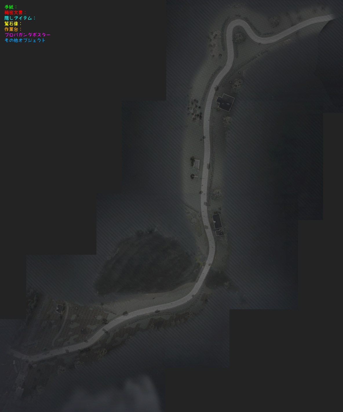 • プロパガンダポスターは隠しアイテムにカウントされるため、以下のマップでは隠しアイテムがひとつ足りないように見えるかもしれません。