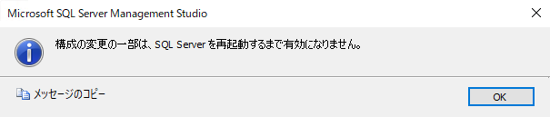 「オブジェクト エクスプローラー」からサーバーを右クリックして「再起動」を選択します。再起動には管理者権限が必要です。