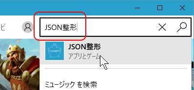 画面上部の検索欄から「JSON整形」と入力して検索します。