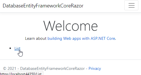 @model DatabaseEntityFrameworkCoreRazor.Pages.ListModel