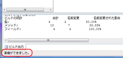 メッセージ欄にはビルドの進行状況とどの程度難読化できたかなどの簡単な結果が表示されます。