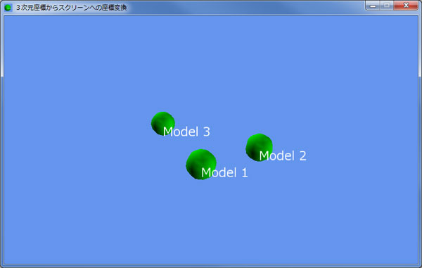 3Dゲームなどでキャラクターの頭上に名前を表示したい場合など、キャラクターの3次元空間位置から文字を表示すべきスクリーン座標を算出する必要があります。